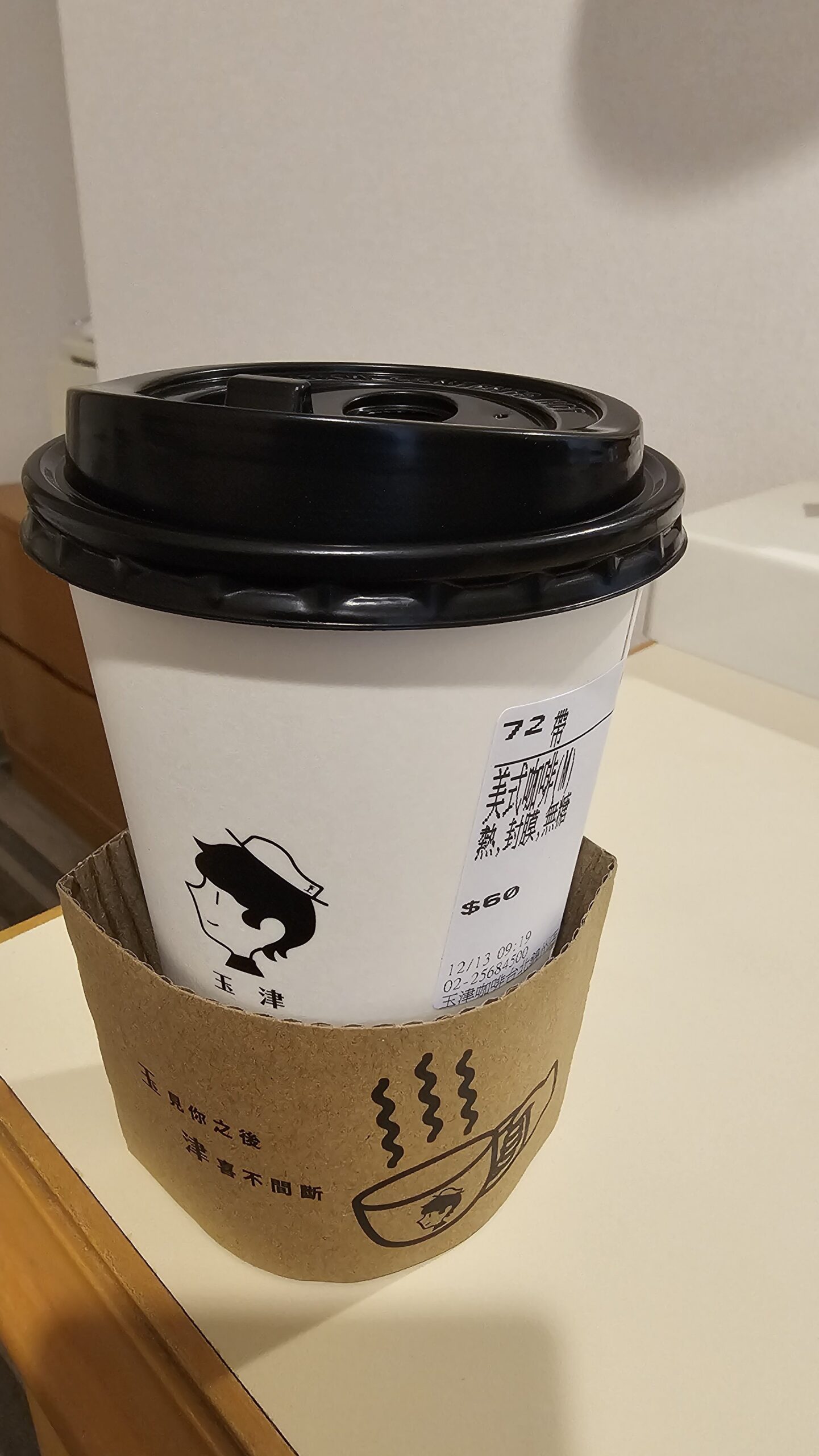 体調回復のためにカフェイン注入。アメリカーノ、60TWD(カード払い)